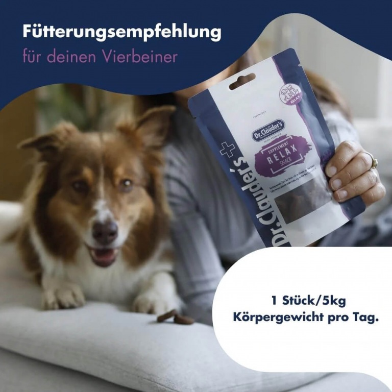 Wir empfehlen eine Tagesration von einem Snack pro 5 kg Körpergewicht. Diese Menge liefert die ideale Dosis an Inhaltsstoffen für Ihr Tier. Die Snacks können ohne große zeitliche Verzögerung verfüttert werden, da kein Aufbau über mehrere Tage erforderlich ist. Für eine grundsätzlich entspanntere Grundstimmung Ihres Tieres kann der Snack jedoch 1-2 Tage vor der vermutlichen Stresssituation gegeben werden. Es ist nicht notwendig, mehr als die in der Fütterungsempfehlung angegebene Menge zu füttern, eine höhere Menge ist jedoch gesundheitlich unbedenklich.